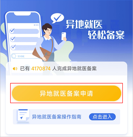 然后打开“国家异地就医备案”小程序——“异地就医”—“异地就医备案申请”