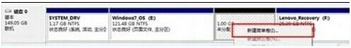 5、在新划分出来的空白空间选择邮件“新建简单卷”。