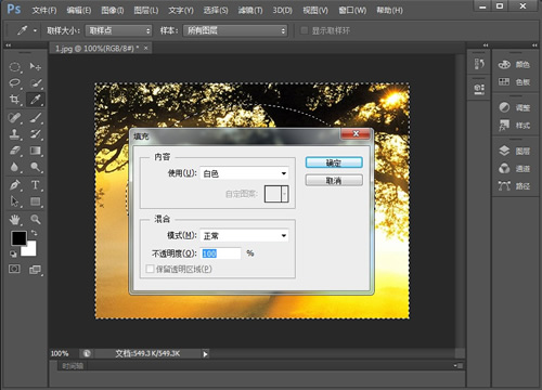 Step05:按下键盘上的DEL键,根据需要,确定填充的内容颜色、混合模式、透明度。