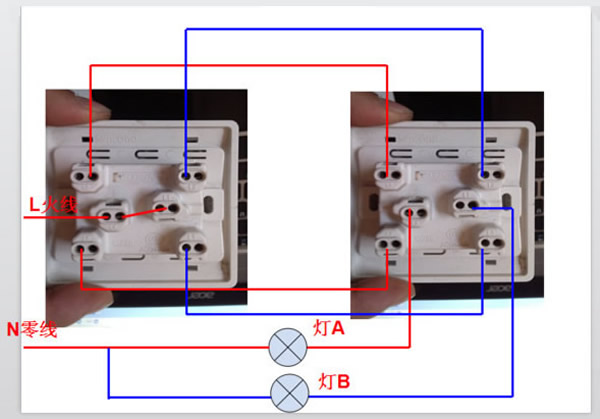 这是二位双控开关接线实例: