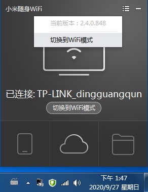5、如果要改回随身WIFI模式,再次右上角下拉菜单,进行切换。OK!