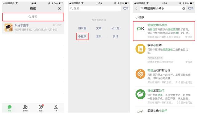 遇到不懂使用的微信功能时,只需在“微信使用小助手”页面,输入关键字搜一搜即可轻松找到相关视频教程。