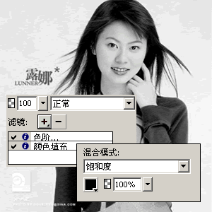 b.填充颜色选择黑色,混合模式为“饱和度”;