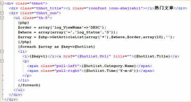 这是将后台置顶文章形成列表展示,第五行数字"10"代表提取的篇数,"$id"代表全局所有栏目,如果指定栏目则将id换成栏目对应的数字。