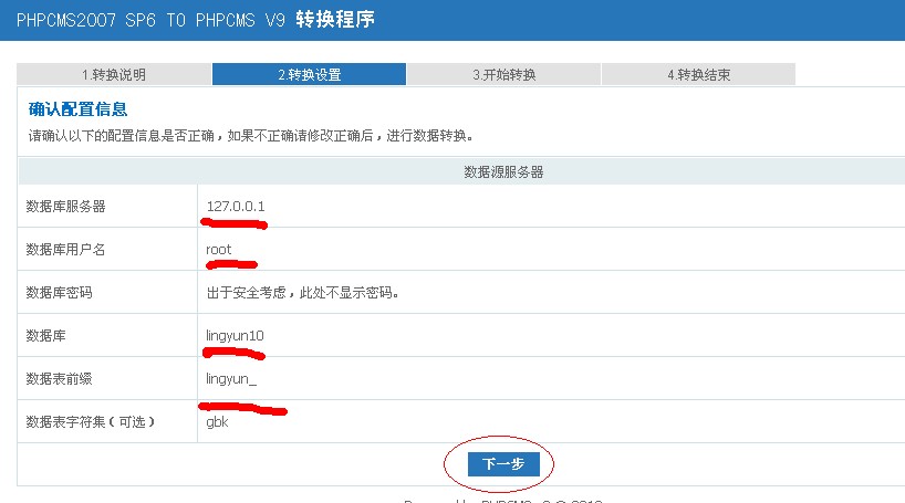 2、下载PHPCMS2007 SP6 到 PHPCMS V9转换程序,PHPCMS2007 SP6转PHPCMS V9 http://download.phpcms.cn/v9/convert/phpcms2007tov9_GBK.zip,下载后解压到phpcms v9的跟目录,转换程序根目录下的phpsso_db_config.php为V9版phpsso的数据库配置文件,请做相应修改。主要根据你安装phpcms v9 时的配置更改,不要搞错了。