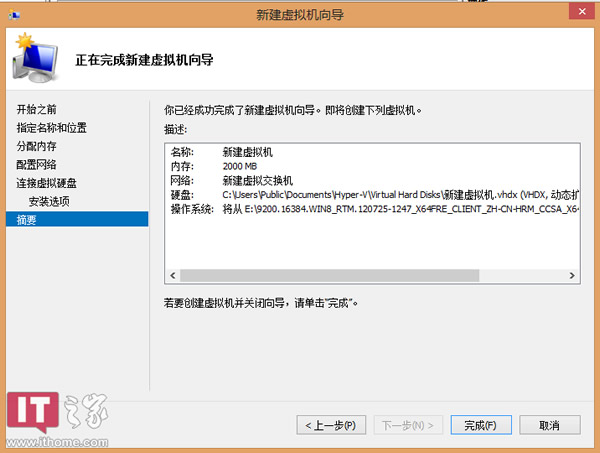 点击完成系统就会自动开始创建,创建完成后就可以在hyper-v主界面看到刚才创建的虚拟机了。