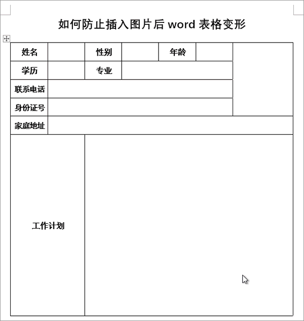 日常工作中,填写履历表时,常常遇到这样的情形,因为插入的照片过大,导致表格变形的情况,倘若手动调整会非常麻烦,有没有比较简单的办法呢?